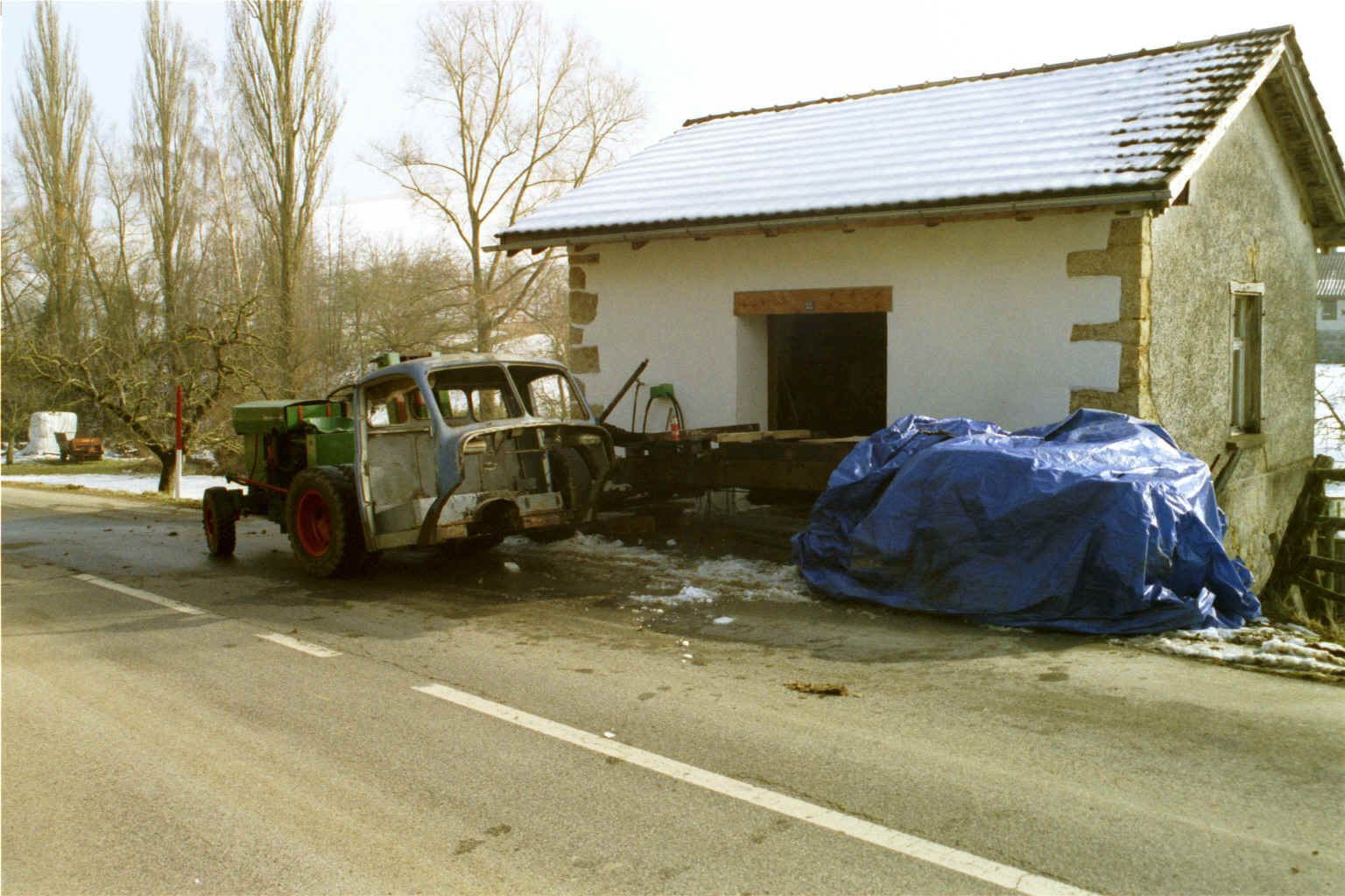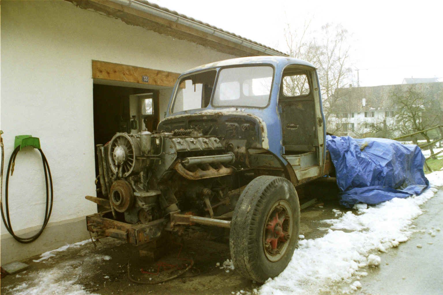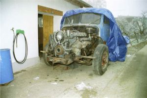 Zuhause angekommen gab es bereits die ersten Probleme. Wo will ich das Alteisen versorgen? Meine damalige Werkstatt war nur sechs auf acht Meter gross. So stellte ich das Vehikel halt auf den Vorplatz. Dann begann ich sofort mit der Zerlegung damit das Eingangstor zur Werkstatt bald wieder frei wurde.