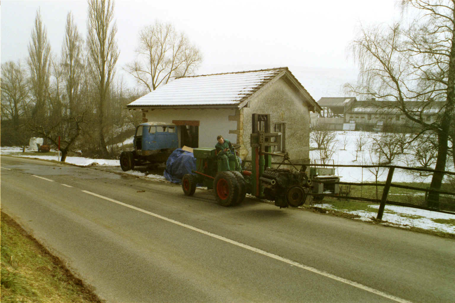 Durch das Buschtelefon habe ich erfahren, dass Heiri Bührer seinen Jupiter weghaben will (oder muss). Sogleich habe ich durch das selbe Buschtelefon verlauten lassen, dass ich diesen Laster schon abräumen würde. Am 14 Dezember 1998 habe ich den Jupiter dann erhalten mit dem Versprechen dass der Magirus so schnell wie möglich abgeräumt wird. So habe ich dann am 19 Dezember 1998 den Jupiter mit meinem DEUTZ F2L514 in die neue Heimat gezogen. Der Motor war nicht mehr Lauffähig und das Getriebe war ausgebaut, darum musste abgeschleppt werden. Aber man hatte ja die passende Zugmaschine und so war alles kein Problem. ( Von diesem Schlepper werde ich zu einem späteren Zeitpunkt auch eine Geschichte verfassen )