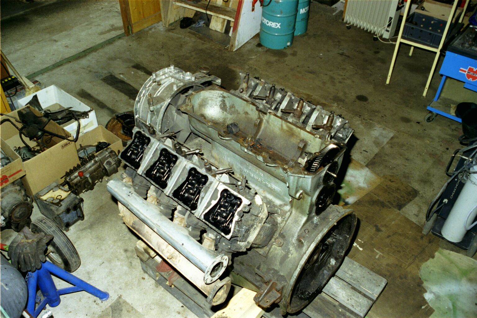Nachdem alles irgendwo verstaut ist kann endlich mit der Restauration begonnen werden. Als erstes habe ich mir den Motor vorgenommen. Dabei sind böse Sachen zum vorschein gekommen.
